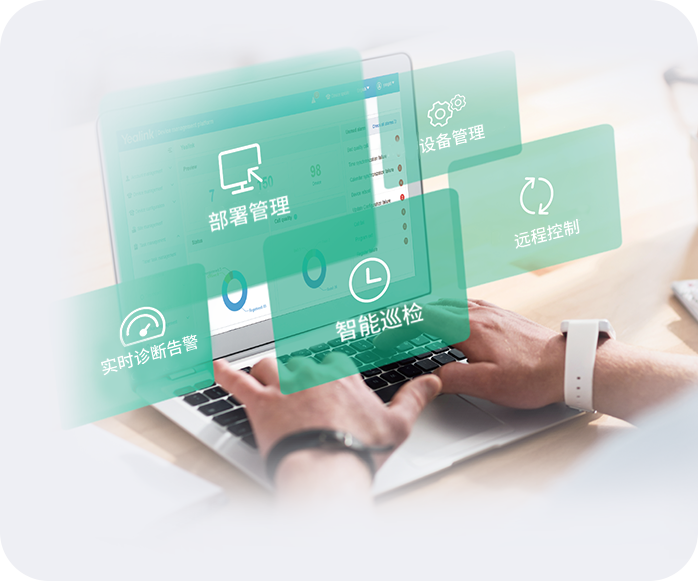 用户⽆需⼿动配置和升级话机,只需开机联网、后台配置,
