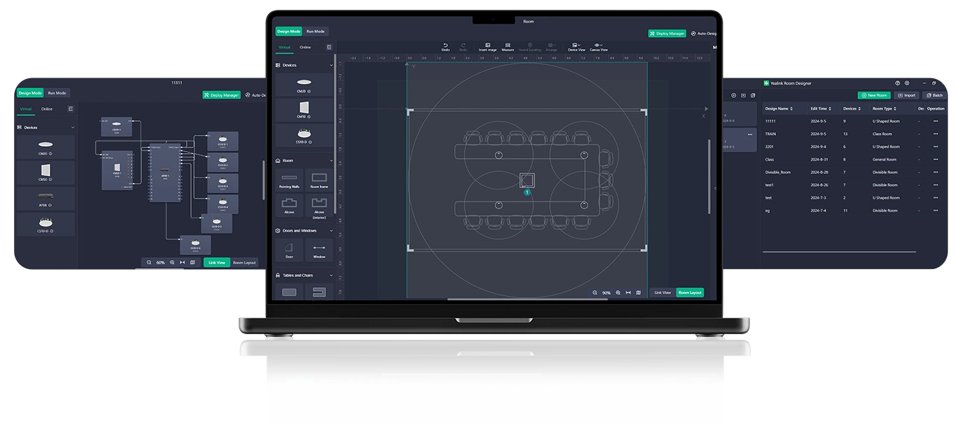支持一键部署按钮,并兼容 Yealink Room Designer,实现即插即用,配置流程简洁高效。