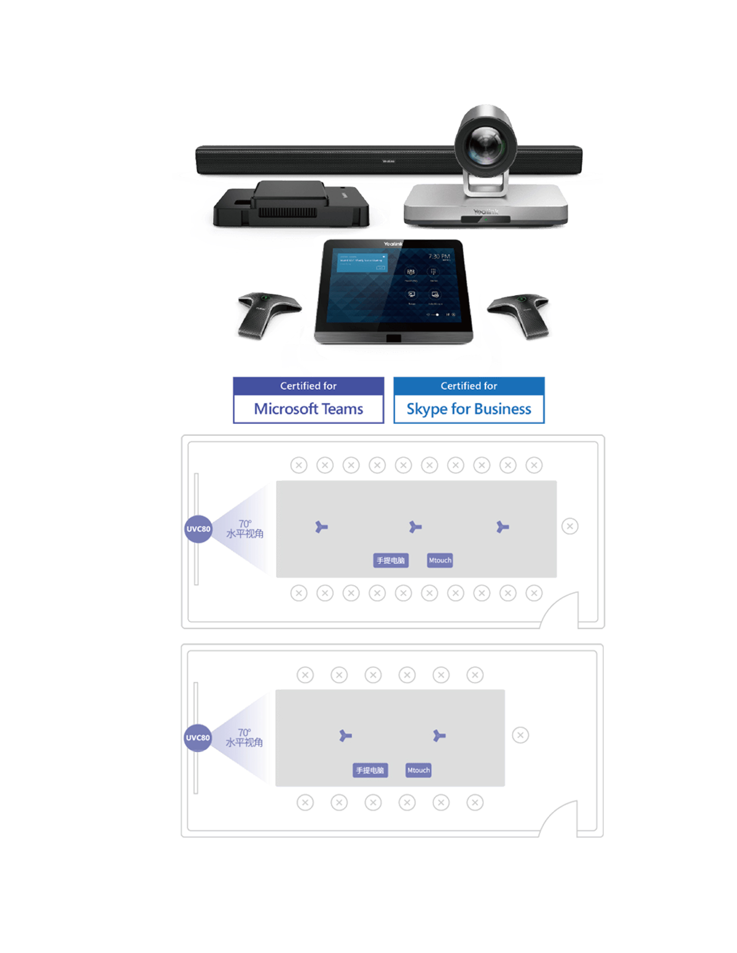 • 亿联MVC800视频会议系统专为中大型会议室设计, 为用户提供原生的微软Teams会议室使用体验。 该方案提供完整的产品组件,包括mini-PC、MTouch触控平板,MShare内容分享套件以及音视频外设。